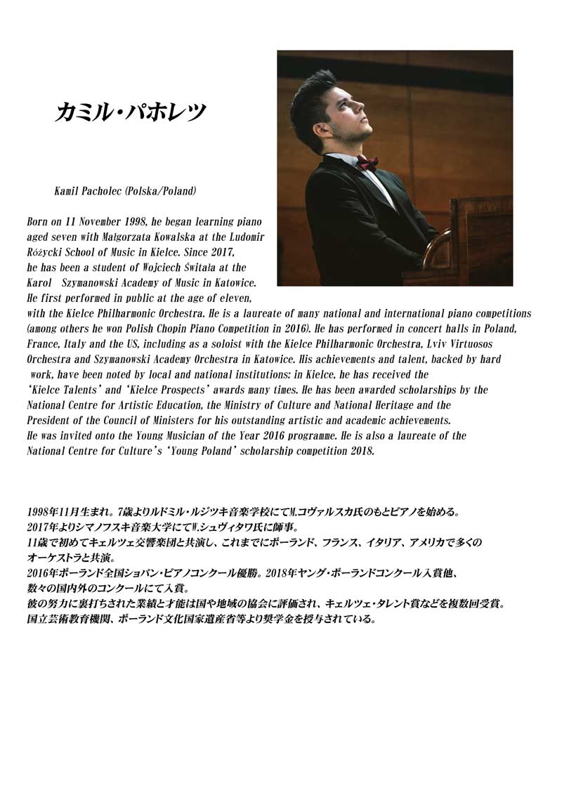 カミル・パホレツさんは2016年ポーランド全国ショパンピアノコンクールで優勝された若手の新鋭ピアニストです。