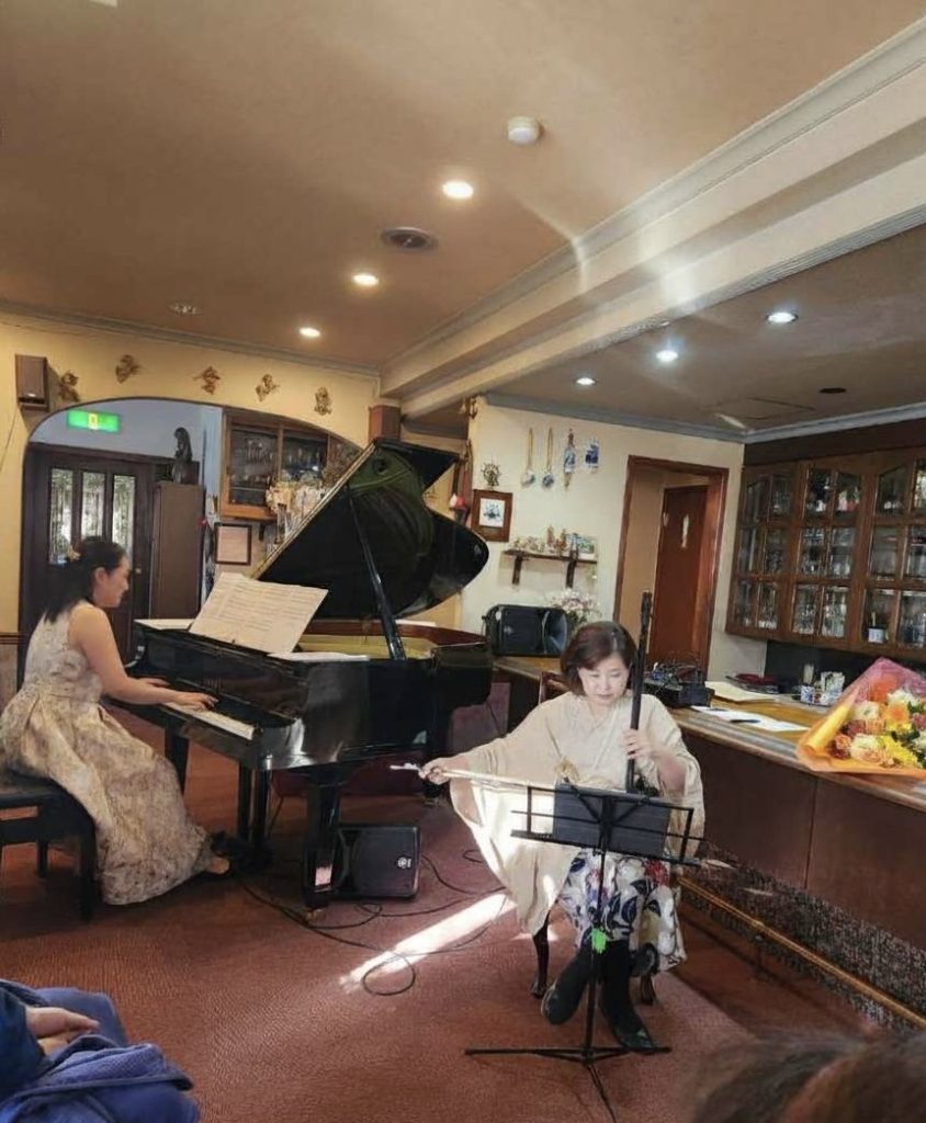 2025年11月16日(日)蓼科のレストラン、ベルにて高原の音楽図書館が開催されました。2回目となる今回は、本場中国仕込のお食事と、二胡とピアノの演奏をお楽しみいただく贅沢なコンサート。二胡を演奏されたのは、第一回目の高原の音楽図書館でお馴染みの今井美樹さん、ピアノは齋藤寧子さんです。二胡とピアノの美しい音色と、なんといっても二人の明るい雰囲気と楽しいお話に会場も和やかな雰囲気に包まれました。演奏後のお食事は一品、一品丁寧に仕込まれた、思わず笑顔がこぼれるほどの美味しいお料理をいただき、コンサートの余韻に浸りながら楽しい夜の時間が流れていきました。ご来場いただいた皆様、誠にありがとうございました。次回の高原の音楽図書館inたてしな、どうぞお楽しみに。
