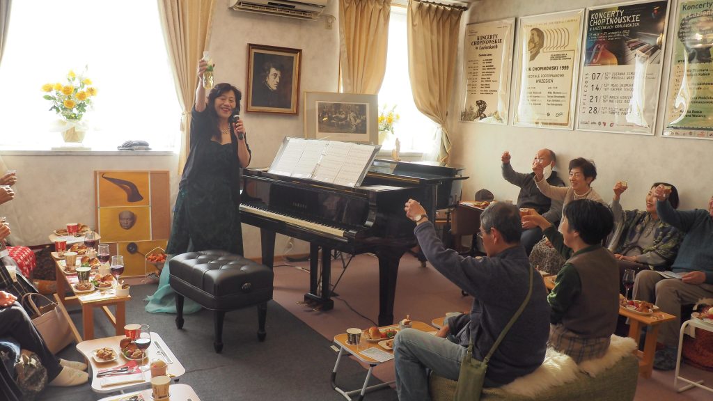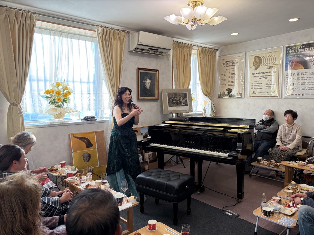ポーランド料理や美味しいお飲み物をいただきながら、奥村美佳さんとのお話や美しい音楽をたっぷりとお楽しみいただきました。フィナーレは、皆さま圧巻のベートーヴェンの熱情の演奏で、感動とともに締めくくりとなりました。2025年、様々なコンサートでみなさまとお会いできる喜び、音楽を通して繋がれる幸せに、心より感謝申し上げます。