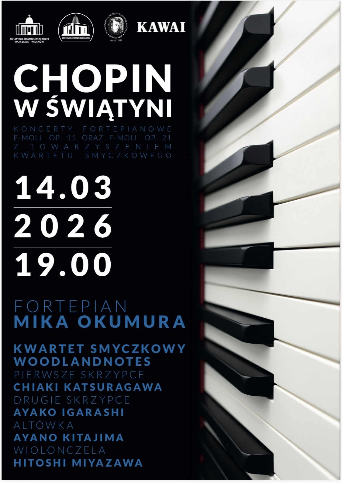 今月3月14日、ポーランドにて夜19時より奥村美佳さんとチェリスト宮澤等さん率いるカルテット、ウッドランドノーツの皆さんとのショパンピアノコンサートが開催されます。プログラムはショパン協奏曲第1番と第2番です。なんと、ポーランドに行かれないという方にも、以下のサイトにて、現地でのコンサートの様子が特別にご覧いただけます。公演時間は日本時間深夜3時からとなります。朝の9時までご視聴いただけますので、ぜひこの機会にみなさまご覧くださいませ。